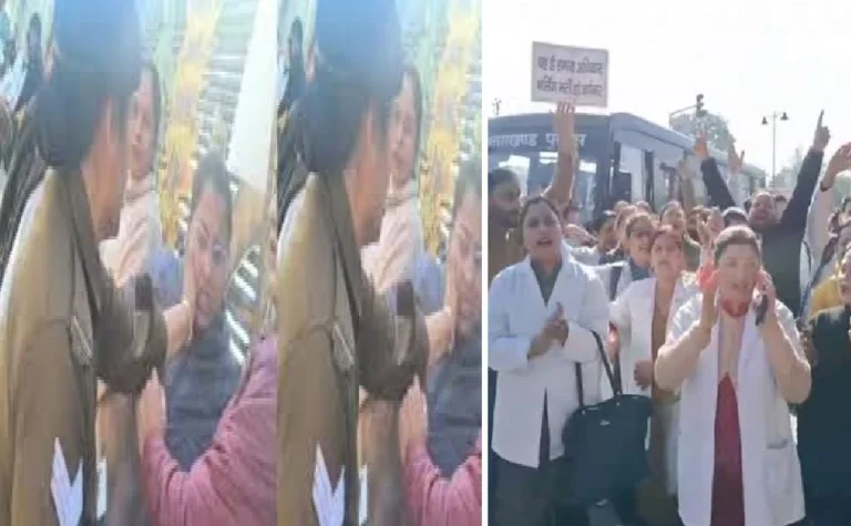 इसी दौरान आगे बढ़ने को लेकर प्रदर्शनकारियों और पुलिस के बीच धक्का-मुक्की हो गई। हालात तब बिगड़ गए जब एक महिला पुलिसकर्मी ने एक नर्सिंग छात्रा को थप्पड़ मार दिया। छात्रा और पुलिसकर्मी के बीच हाथापाई भी हुई। यह वीडियो अब सोशल मीडिया पर तेजी से वायरल हो रहा है।