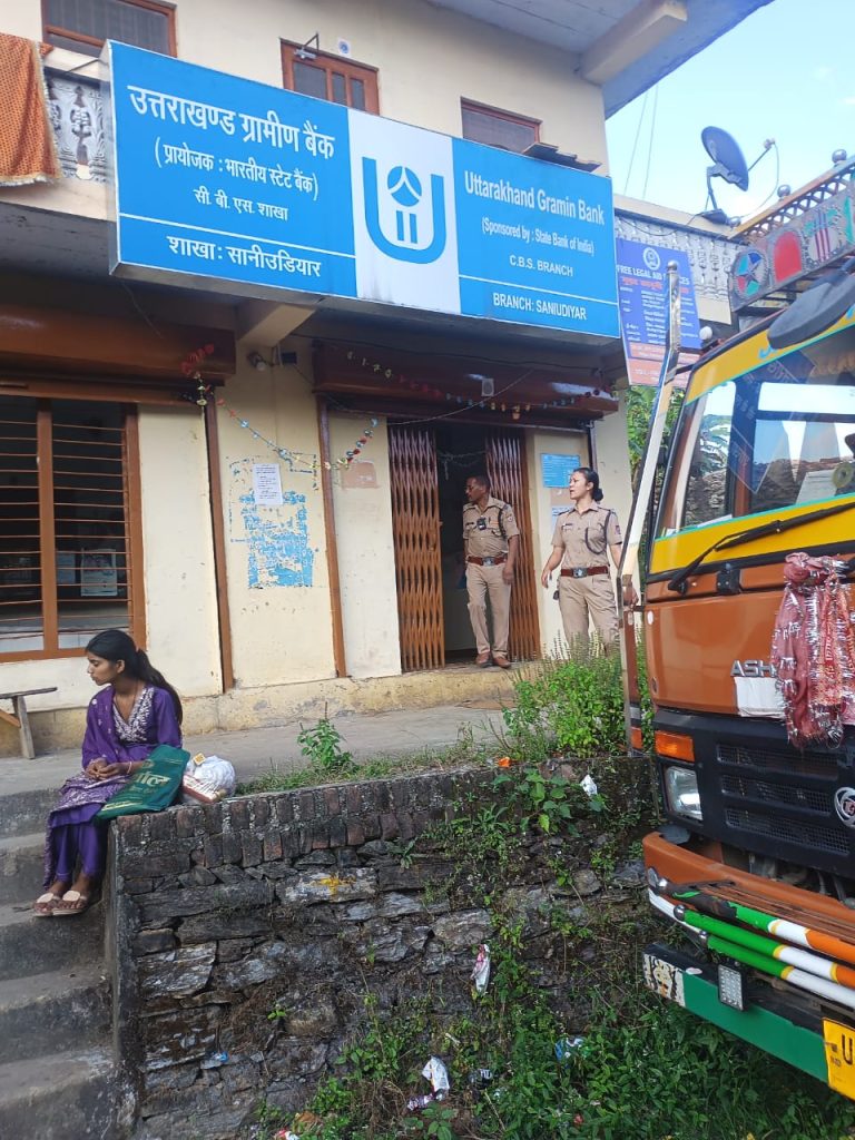 पुलिस अधीक्षक बागेश्वर श्री चन्द्रशेखर घोडके के दिशा-निर्देशन में व पुलिस उपाधीक्षक बागेश्वर श्री अजय साह, पुलिस उपाधीक्षक कपकोट श्री मनीष शर्मा के पर्यवेक्षण में आगामी त्योहारों एवं शादी के सीजन के मद्देनजर बैंकों में होने वाली भीड़-भाड़ और बढ़ते लेन-देन पर सुरक्षा व्यवस्था को और मजबूत बनाने हेतु विशेष चेकिंग अभियान चलाया जा रहा है।