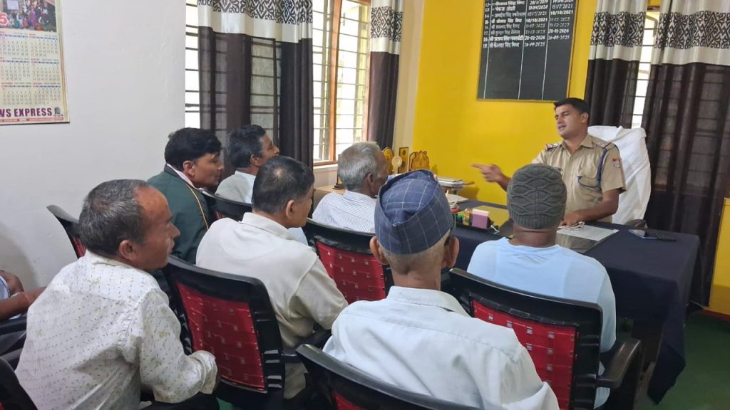 आज दिनांक 06.10.2025 को प्रभारी कोतवाली बैजनाथ श्री कैलाश सिंह बिष्ट द्वारा कोतवाली बैजनाथ क्षेत्रांतर्गत नियुक्त ग्राम प्रहरियों की मीटिंग ली गई सभी ग्राम प्रहरियों को उनके कर्तव्यों से अवगत कराते हुए, नशे के सेवन व व्यापार से होने वाले दुष्परिणामों, व गांवों मै नशे का व्यापार की सूचना तत्काल पुलिस को देने तथा बाल भिक्षावृत्ति, बाल श्रम, मानव तस्करी की रोकथाम, बाल अपराध, महिला अपराध व सुरक्षा, यातायात नियमों, सड़क दुर्घटना में घायलों की मदद कर नेक व्यक्ति बनने आदि के सम्बंध में विस्तृत जानकारी देते हुए अपनी समस्या/शिकायत पुलिस को बताये जाने हेतु जागरुक किया गया । सभी व्यक्तियों को अपने आस-पास बाल श्रम व बाल भिक्षावृत्ति में लिप्त बच्चों की सूचना तुरन्त पुलिस को देने हेतु बताया गया।
