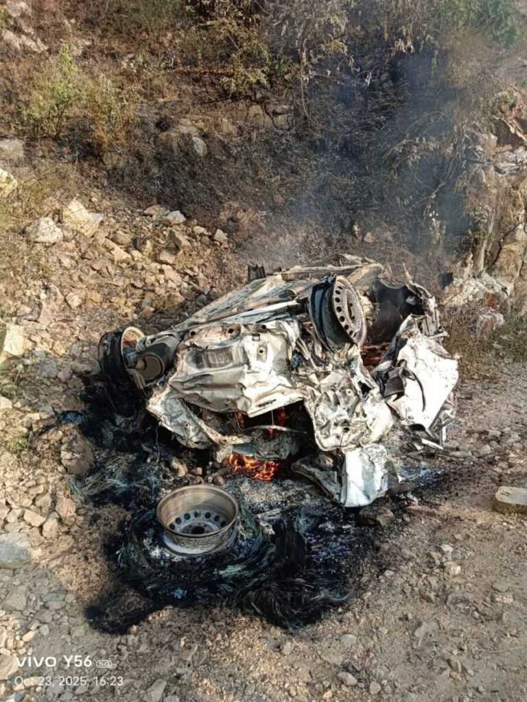 गोपेश्वर। गोपेश्वर-पोखरी रोड पर देवखाल के पास एक कार खाई में गिरकर अटक गई। फिर नीचे की सड़क पर गिरते ही उसमें आग लग गई। कार गिरते ही यूजेवीएनएल देहरादून में तैनात ईई और उनकी पत्नी बाहर छिटक गए। ईई की मौके पर मौत हो गई, जबकि रात साढ़े आठ बजे पत्नी ने जिला अस्पताल में इलाज के दौरान दम तोड़ दिया। कार में फंसे छोटे बेटे की जलकर मौत हो गई, बड़ा बेटा आंशिक रूप से झुलसा है।