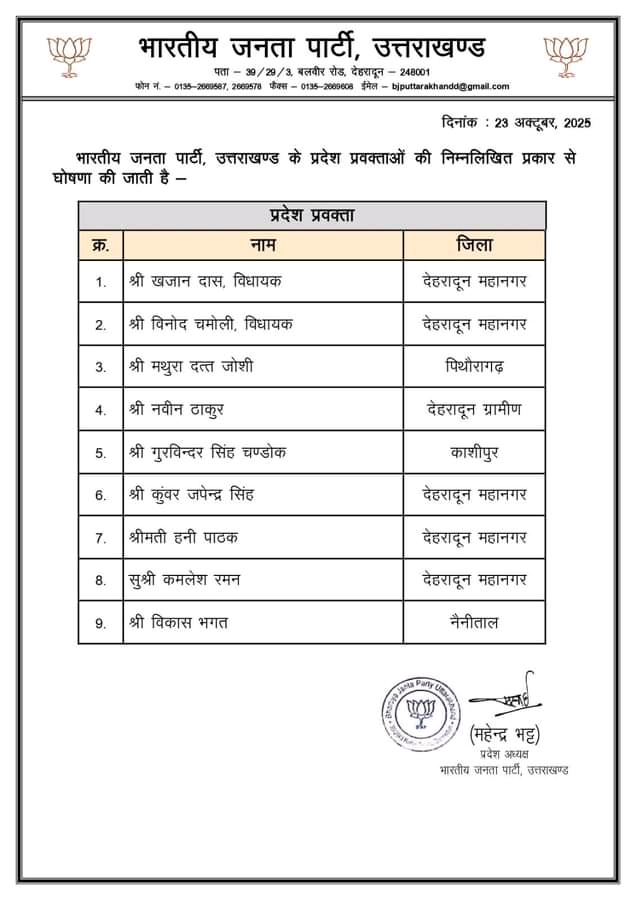 उत्तराखंड कुमाऊँ गढ़वाल राजनीति उत्तराखंड:(बिग न्यूज) BJP प्रदेश प्रवक्ताओं की घोषणा,देखिए लिस्ट देवभूमि खबर नेटवर्क 24 Oct, 2025 ख़बर शेयर करें Your browser does not support the video tag. Your browser does not support the video tag. More Stories उत्तराखंड कुमाऊँ गढ़वाल उत्तराखंड: यहां सीएम धामी ने आयोजित “मुख्य सेवक युवा संवाद” कार्यक्रम में प्रतिभाग किया,इन युवाओं ने रखी अपनी बात देवभूमि खबर नेटवर्क 24 Oct, 2025 उत्तराखंड उत्तराखंड: (दुखद) यहां खाई में गिरी कार हादसे में ईई, पत्नी और बेटे की गई जान देवभूमि खबर नेटवर्क 24 Oct, 2025 उत्तराखंड कुमाऊँ उत्तराखंड:कमस्यार महोत्सव समिति ने घाटी में एक भावनात्मक परंपरा की शुरुआत की देवभूमि खबर नेटवर्क 23 Oct, 2025